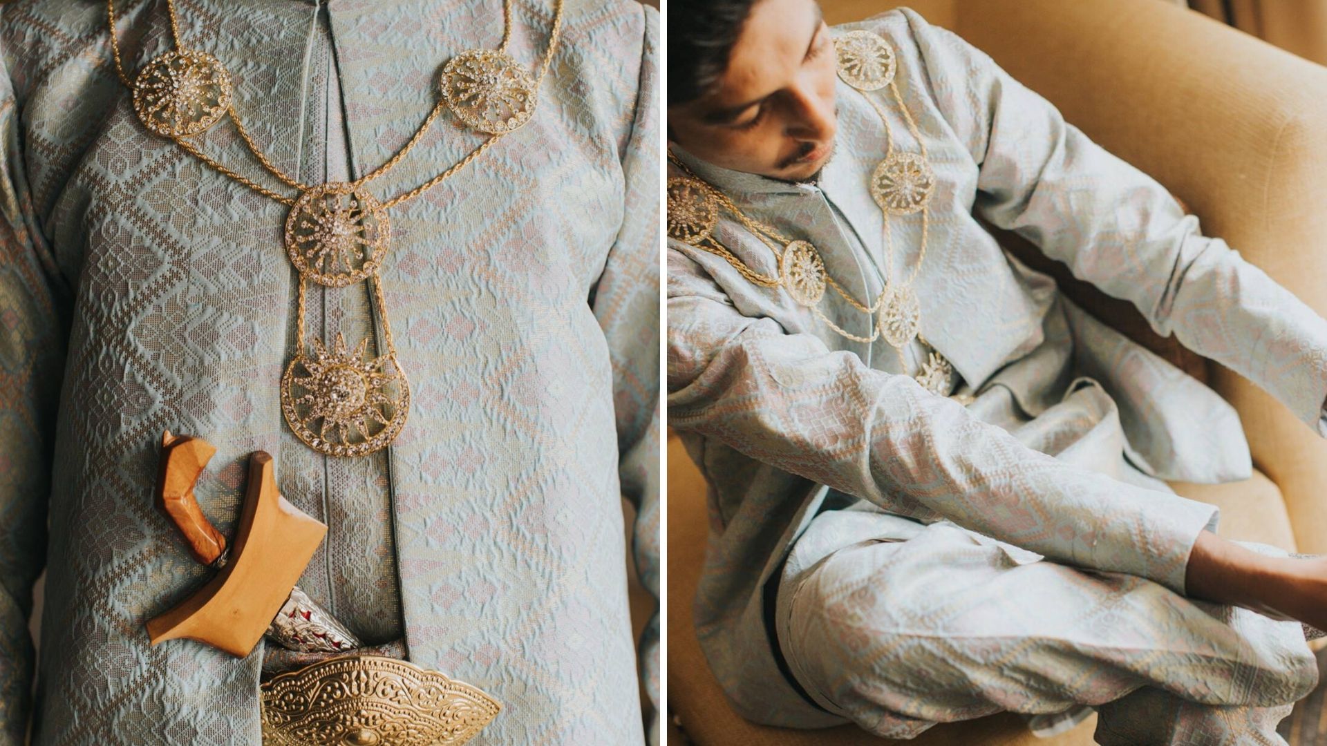 “Since a Malay groom is considered raja sehari, they are allowed to wear the accessories to complete their wedding costumes,” says wedding planner Eyna Zainal of Syurga Cinta Abadi Weddings.